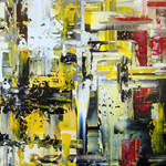2009Gemengde technieken. Acryl op linnen. Thema snelheid & diepte. Ingelijst in een strakke zwarte baklijst.