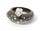 2007Pinkring, zirkonium gecombineerd met witgoud. Bezet met een witte hart geslepen diamant van 0,35 ct.
